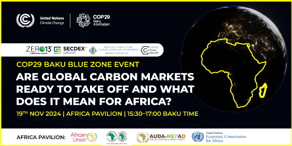 This event by ZERO13, SECDEX Group and The Ministry Of Agriculture, Climate Change and Environment of the Republic Of Seychelles, will be a panel session that explores the unique opportunities and challenges facing Africa’s carbon markets, with a focus on bridging the multi-trillion dollar annual financing gap, enhancing market transparency, and positioning African nations as key players in the global carbon market ecosystem. We will discuss the current situation, and expected future developments and explore the enablers which can create efficiencies, including digital technologies. We believe that this conversation aligns closely with the African Union Commission’s vision of sustainable economic growth and climate resilience, as well as with the broader themes of COP29.